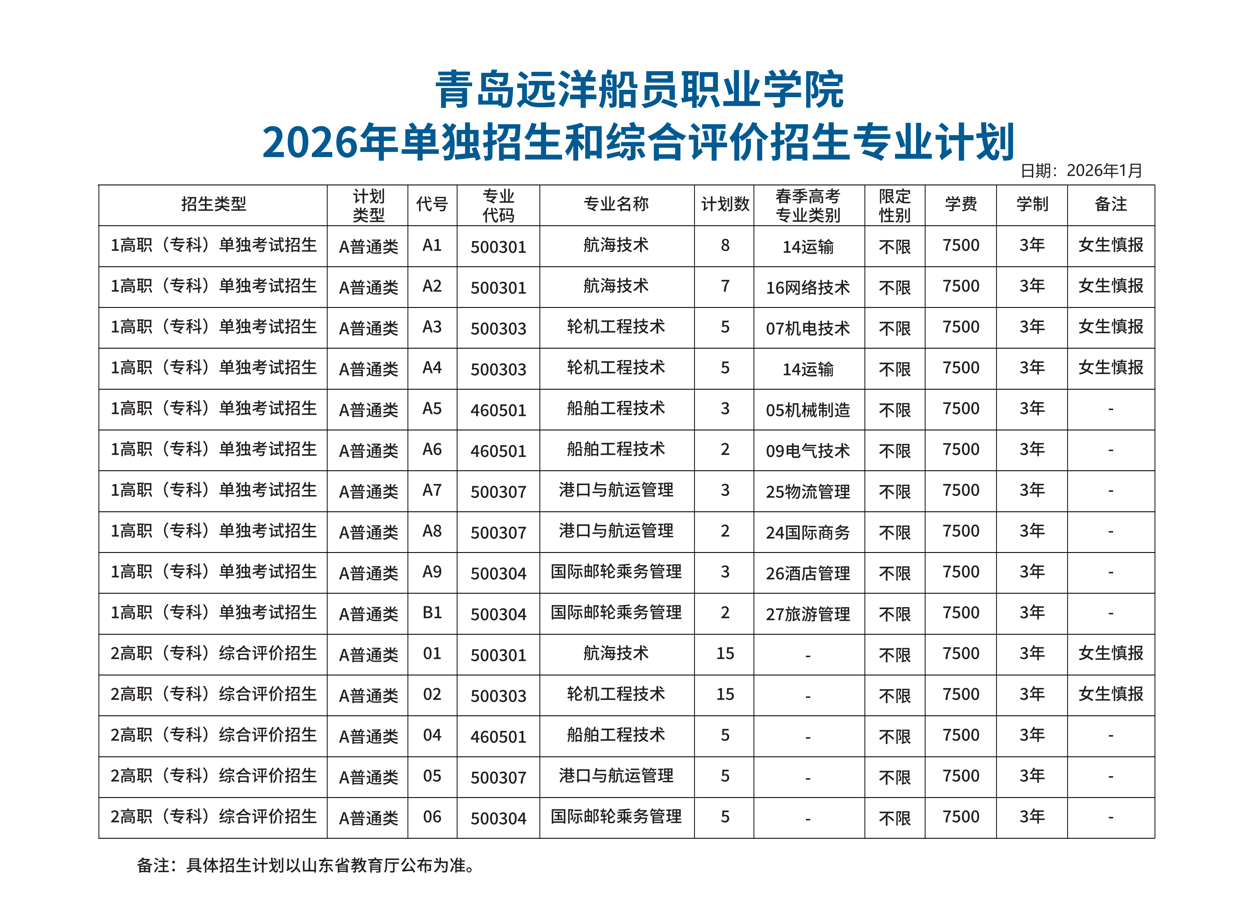 青岛远洋船员职业学院2026年招生简章(单招综评)